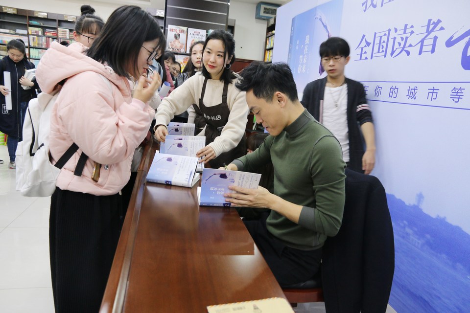 劉同,是一位深受國內(nèi)高校大學(xué)生喜愛的青年作家,以“誰的青春不迷!毕盗行≌f著作而聞名。“你在你的城市等我,我在未來等你”不只是一句口號,而是屬于劉同與讀者之間的約定。在洛陽這兩場讀者見面會上,劉同親切地與在場讀者朋友交流互動,分享自己的成長感悟和人生抉擇,針對大家或關(guān)于作品本身、或關(guān)于人生成長、或關(guān)于職業(yè)規(guī)劃、或關(guān)于青春困惑的問題,他都幽默風(fēng)趣地給出自己最真誠的解答。在簽售中,他與每個(gè)讀者或擊掌,或握手,真情飽滿。劉同說他既不做職場導(dǎo)師,也不做意見領(lǐng)袖,永遠(yuǎn)是一個(gè)天真而熱血的“小人物”,與大家同在。