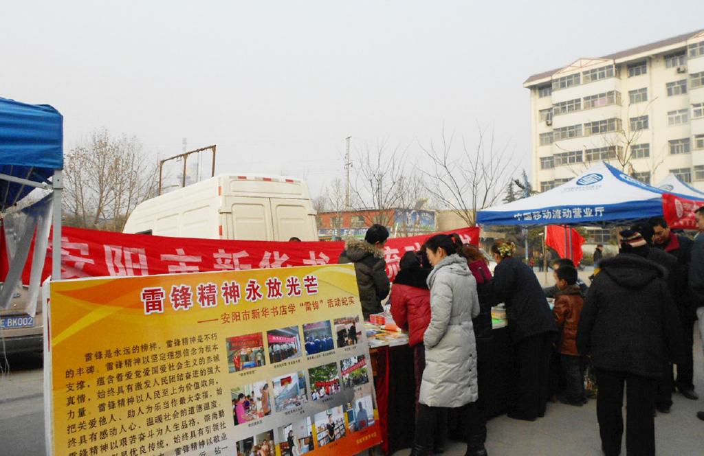 為了弘揚(yáng)雷鋒精神,方便廣大讀者購書,在紀(jì)念雷鋒同志犧牲五十周年之際,安陽圖書音像城積極與安陽化肥廠團(tuán)委聯(lián)系,精心挑選紀(jì)念雷鋒同志的相關(guān)圖書、暢銷書組成流動(dòng)書店,到化肥廠住宅小區(qū)為廣大職工和家屬提供流動(dòng)售書服務(wù),取得了良好的社會(huì)效益和經(jīng)濟(jì)效益。活動(dòng)不僅滿足了企業(yè)干部職工的精神文化需求,而且較好地解決了企業(yè)干部職工買書難的問題,進(jìn)一步樹立了新華書店的良好社會(huì)形象。