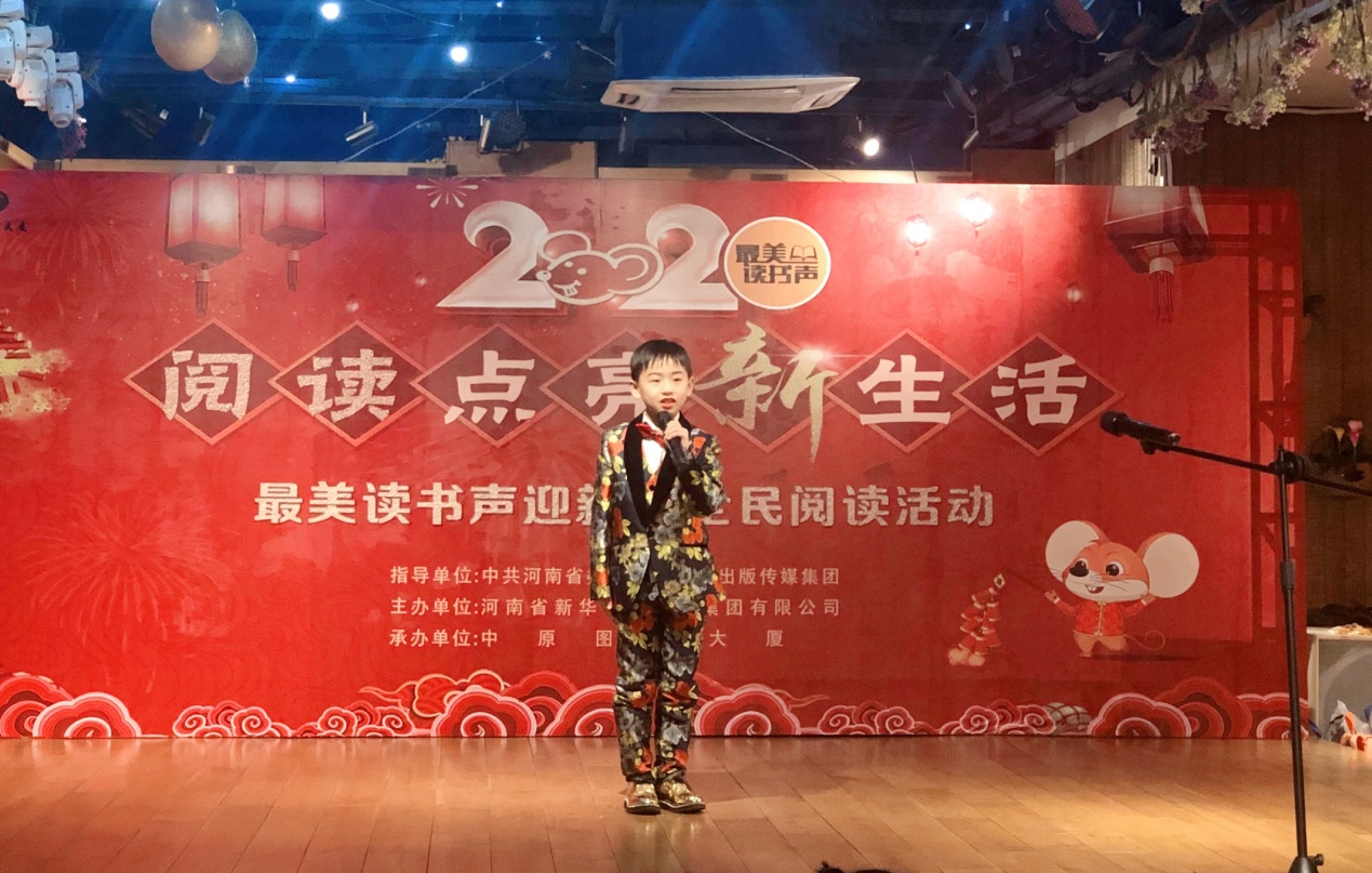 “七十年春華秋實(shí),七十年日升月落。這里,有我們熱血澎湃的青春年華…”,2019年12月29日晚,在中原圖書大廈組織開展的“最美讀書聲”慶元旦閱讀活動上,8歲的曹子睿小朋友正在用鏗鏘有力的聲音深情朗誦《70年贊歌》。