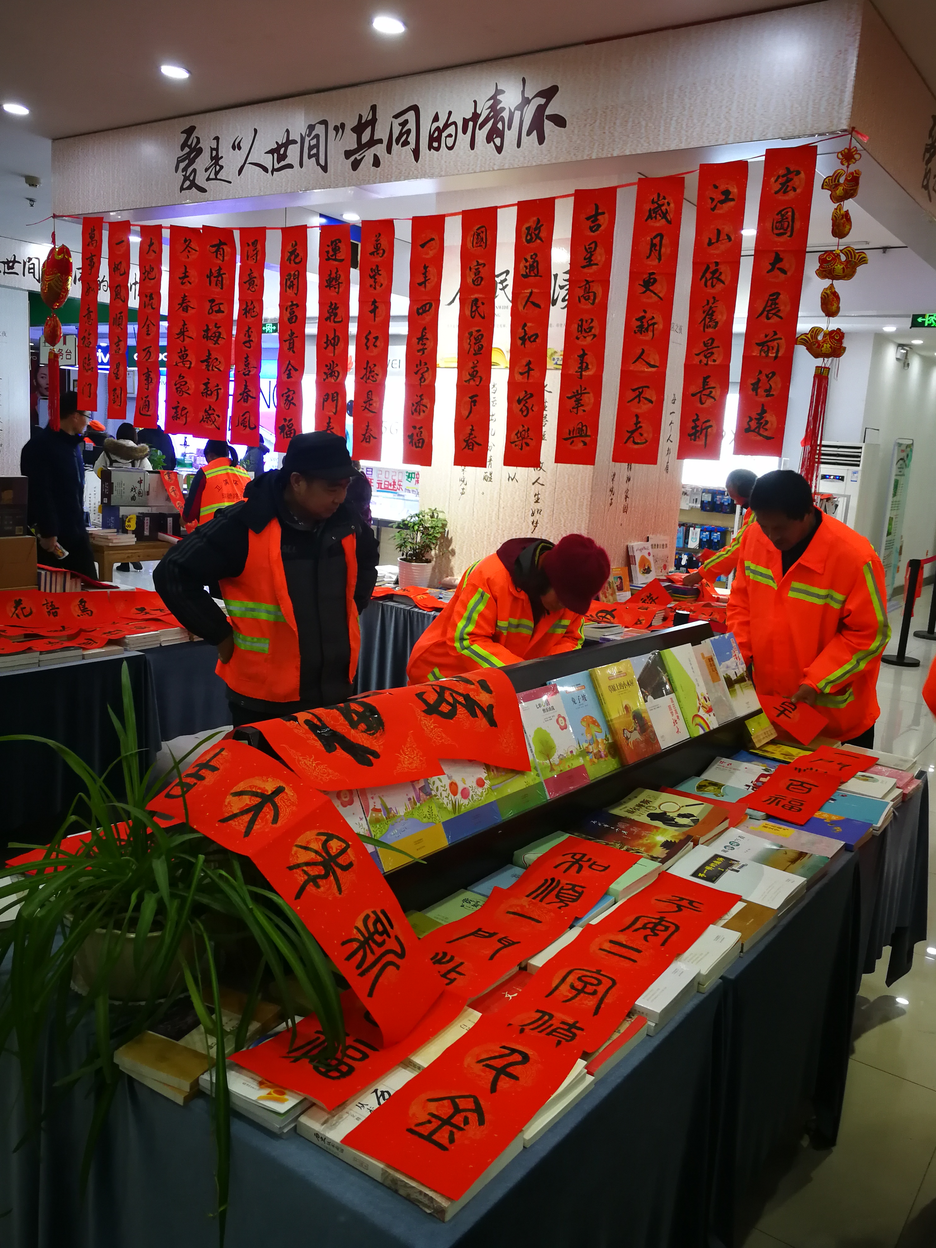 元月12日,新鄉(xiāng)市店在購(gòu)書中心舉辦了“春聯(lián)有范兒”為主題的新鄉(xiāng)市女子書畫家協(xié)會(huì)義寫春聯(lián)活動(dòng)。活動(dòng)共邀請(qǐng)了新鄉(xiāng)市十余名女性書法家現(xiàn)場(chǎng)為讀者義務(wù)書寫并贈(zèng)送春聯(lián)活動(dòng),當(dāng)天購(gòu)書讀者憑小票均可領(lǐng)取一份包含墨香和祝福的春聯(lián),同時(shí),貧困職工、勞模、環(huán)衛(wèi)工人均可優(yōu)先領(lǐng)取書法家手寫春聯(lián)一副。據(jù)了解,活動(dòng)當(dāng)天,來(lái)自新鄉(xiāng)市女子書畫家協(xié)會(huì)的書法愛(ài)好者現(xiàn)場(chǎng)揮毫潑墨,共計(jì)送出福字170余幅,春聯(lián)300余對(duì)兒,為廣大市民送去屬于新華人的新春祝福。