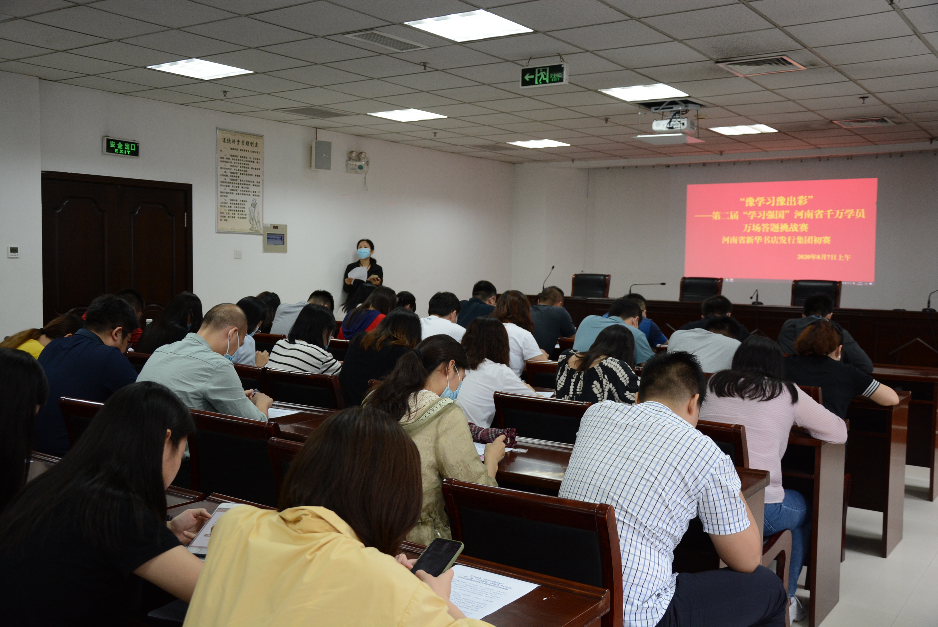 為深入貫徹落實(shí)習(xí)近平總書(shū)記關(guān)于加強(qiáng)學(xué)習(xí)、建設(shè)學(xué)習(xí)大國(guó)重要指示精神,建好、辦好、用好“學(xué)習(xí)強(qiáng)國(guó)”學(xué)習(xí)平臺(tái),進(jìn)一步提高廣大黨員干部群眾學(xué)習(xí)積極性,按照省委宣傳部組織開(kāi)展“‘豫學(xué)習(xí)豫出彩’——第二屆“學(xué)習(xí)強(qiáng)國(guó)“河南省千萬(wàn)學(xué)員萬(wàn)場(chǎng)答題挑戰(zhàn)賽活動(dòng)的通知要求和中原出版?zhèn)髅郊瘓F(tuán)公司黨委的具體部署,發(fā)行集團(tuán)黨委于8月7日上午組織開(kāi)展“豫學(xué)習(xí)豫出彩”——第二屆“學(xué)習(xí)強(qiáng)國(guó)”河南省千萬(wàn)學(xué)員萬(wàn)場(chǎng)答題挑戰(zhàn)賽發(fā)行集團(tuán)初賽,來(lái)自本部各支部的44位選手參加了比賽。
