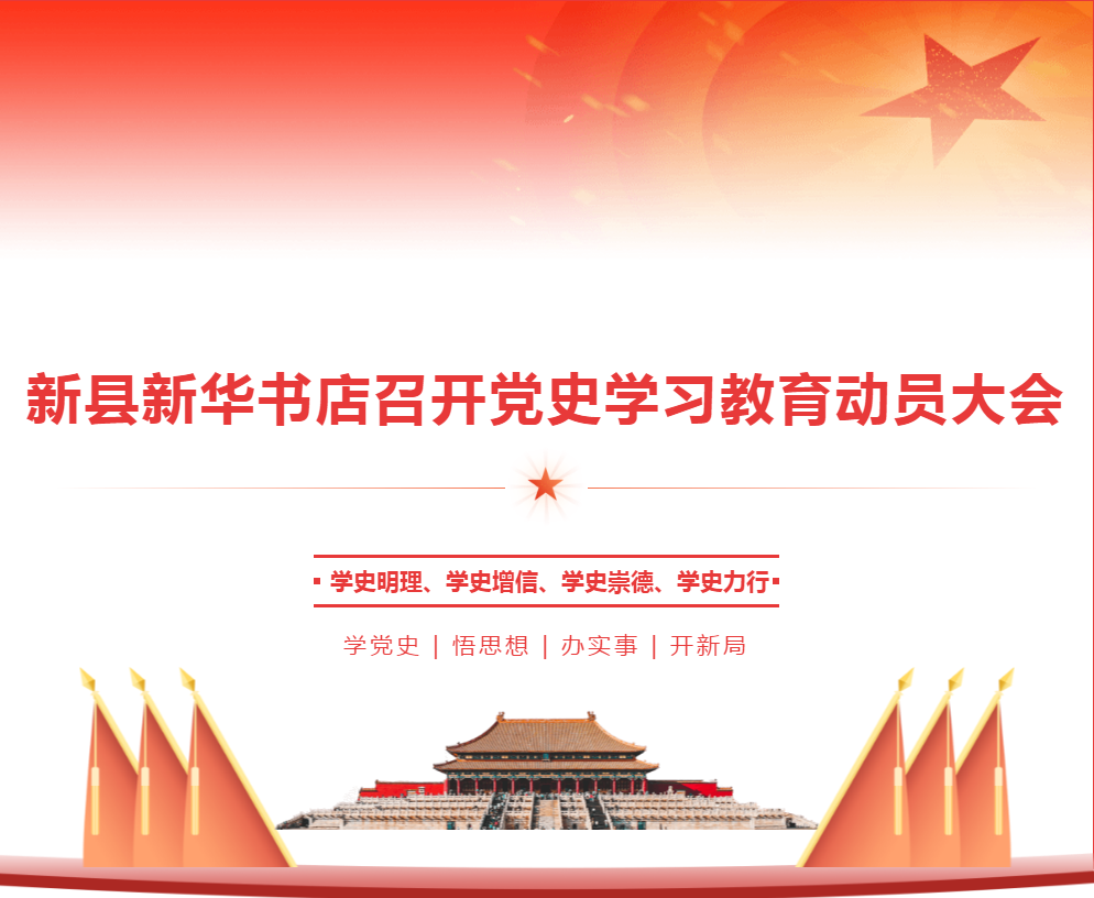 為深入學(xué)習(xí)貫徹習(xí)近平總書記在黨史學(xué)習(xí)教育動員大會上的重要講話精神,落實省、市、縣委和集團(tuán)黨委動員大會部署,3月25日上午,新縣新華書店組織全體黨員召開了黨史學(xué)習(xí)教育動員大會。