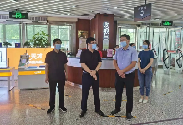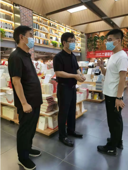 8月2日上午,集團(tuán)公司黨委副書記、副董事長王大瑋一行先后到中原圖書大廈、省直書店、尚書房尚書苑店督導(dǎo)檢查疫情防控工作落實情況,并慰問堅守一線的職工,囑咐疫情期間做好個人防護(hù)。