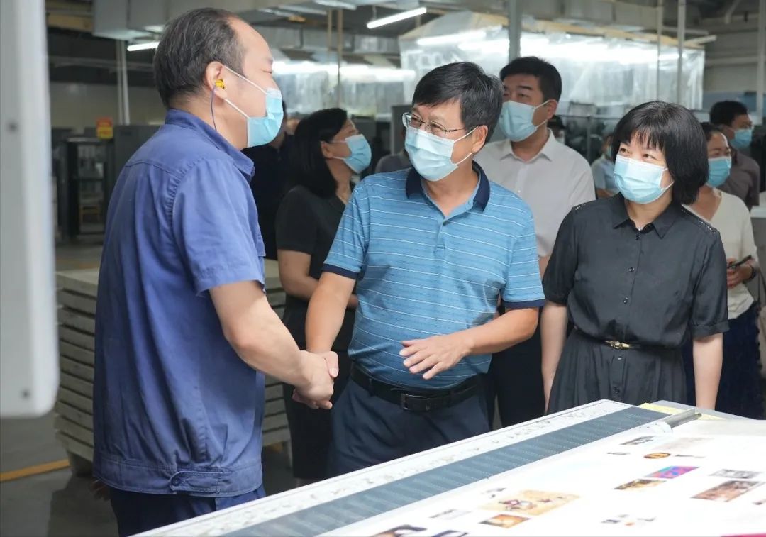 8月25日上午,河南省委宣傳部副部長、省新聞出版局(省版權(quán)局)局長譚福森深入河南新華印刷集團(tuán)、河南省新華書店發(fā)行集團(tuán)等單位,調(diào)研指導(dǎo)中小學(xué)教材印制配發(fā)和重點(diǎn)黨政理論讀物發(fā)行工作。中原出版?zhèn)髅郊瘓F(tuán)黨委書記、董事長、總裁王慶,集團(tuán)公司領(lǐng)導(dǎo)林疆燕參加調(diào)研。
