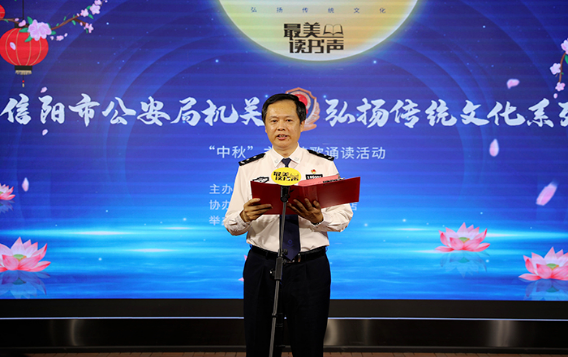為大力弘揚中華民族傳統(tǒng)文化,9月6日下午,信陽市公安局機(jī)關(guān)在新華書店中心書城隆重舉辦弘揚傳統(tǒng)文化系列之“中秋”主題詩歌誦讀活動。信陽市公安局、市新華書店相關(guān)領(lǐng)導(dǎo)出席活動。