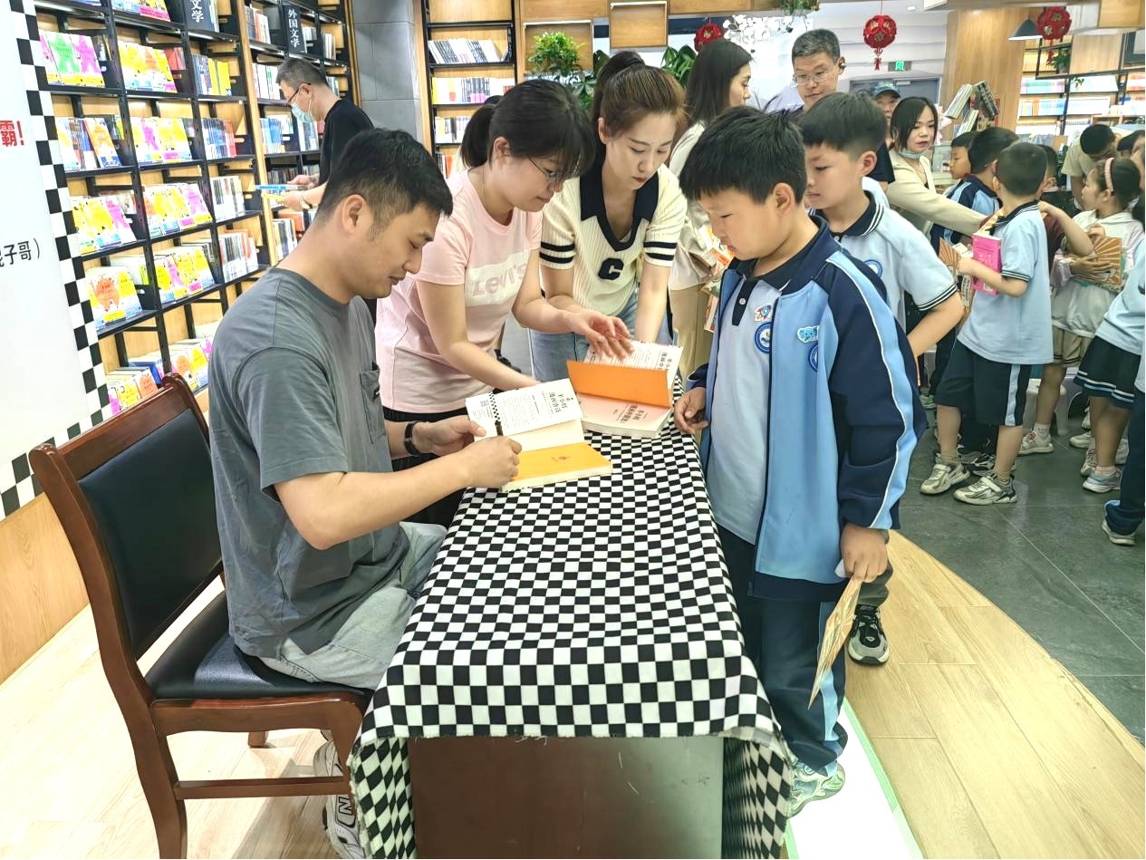 示范區(qū)實驗小學(xué)近三百名學(xué)生及老師、家長早早走進(jìn)新華書店,只為一睹“混子哥”的“廬山真面目”。在見面會現(xiàn)場,陳磊和小粉絲們分享了《半小時漫畫》系列圖書的創(chuàng)作初衷以及創(chuàng)作過程,他的溫文爾雅、平易近人給現(xiàn)場的小朋友們留下了深刻的印象。