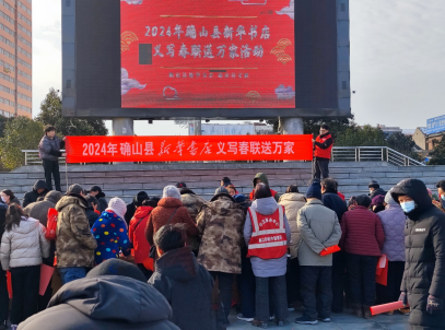 1月26日,確山縣新華書店結(jié)合運用全省書店春節(jié)春聯(lián)征集成果,聯(lián)合縣文聯(lián)組織開展了“義寫春聯(lián)送萬家”活動,特邀確山縣文聯(lián)的書法家們揮毫潑墨義寫春聯(lián),把新年的祝福送給了廣大群眾,為書香確山建設(shè)添磚加瓦。