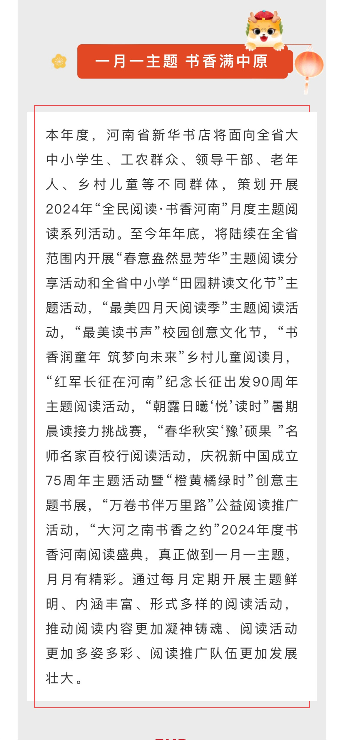 一月一主題 書香滿中原 | 河南省新華書店聯(lián)動開展“以書紀年,集市行樂”新春閱讀主題活動