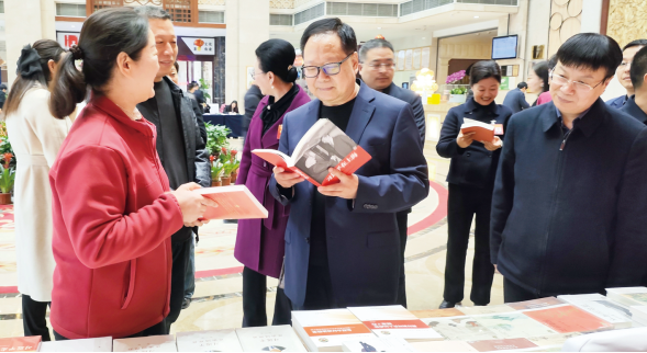 本次贈(zèng)書薦書活動(dòng)中,漯河市店圍繞主題精心選擇了20多種推薦書目供市政協(xié)委員挑選;顒(dòng)現(xiàn)場,委員們紛紛在展臺前駐足流連、認(rèn)真翻看、挑書選書,對活動(dòng)表示充分認(rèn)可。市政協(xié)主席王克俊指出,向委員贈(zèng)書薦書這種方式非常好,全市各級政協(xié)組織和廣大政協(xié)委員要認(rèn)真貫徹習(xí)近平總書記關(guān)于讀書學(xué)習(xí)的重要論述,聚焦黨委政府工作重點(diǎn)、經(jīng)濟(jì)轉(zhuǎn)型發(fā)展難點(diǎn),把委員讀書活動(dòng)同提升履職能力結(jié)合起來、同更好聯(lián)系群眾結(jié)合起來、同加強(qiáng)隊(duì)伍建設(shè)結(jié)合起來,精心設(shè)計(jì)讀書課題,多讀書、讀好書、善讀書,在讀書中提升修養(yǎng)、拓展視野,推動(dòng)“書香政協(xié)”建設(shè)扎實(shí)開展。
