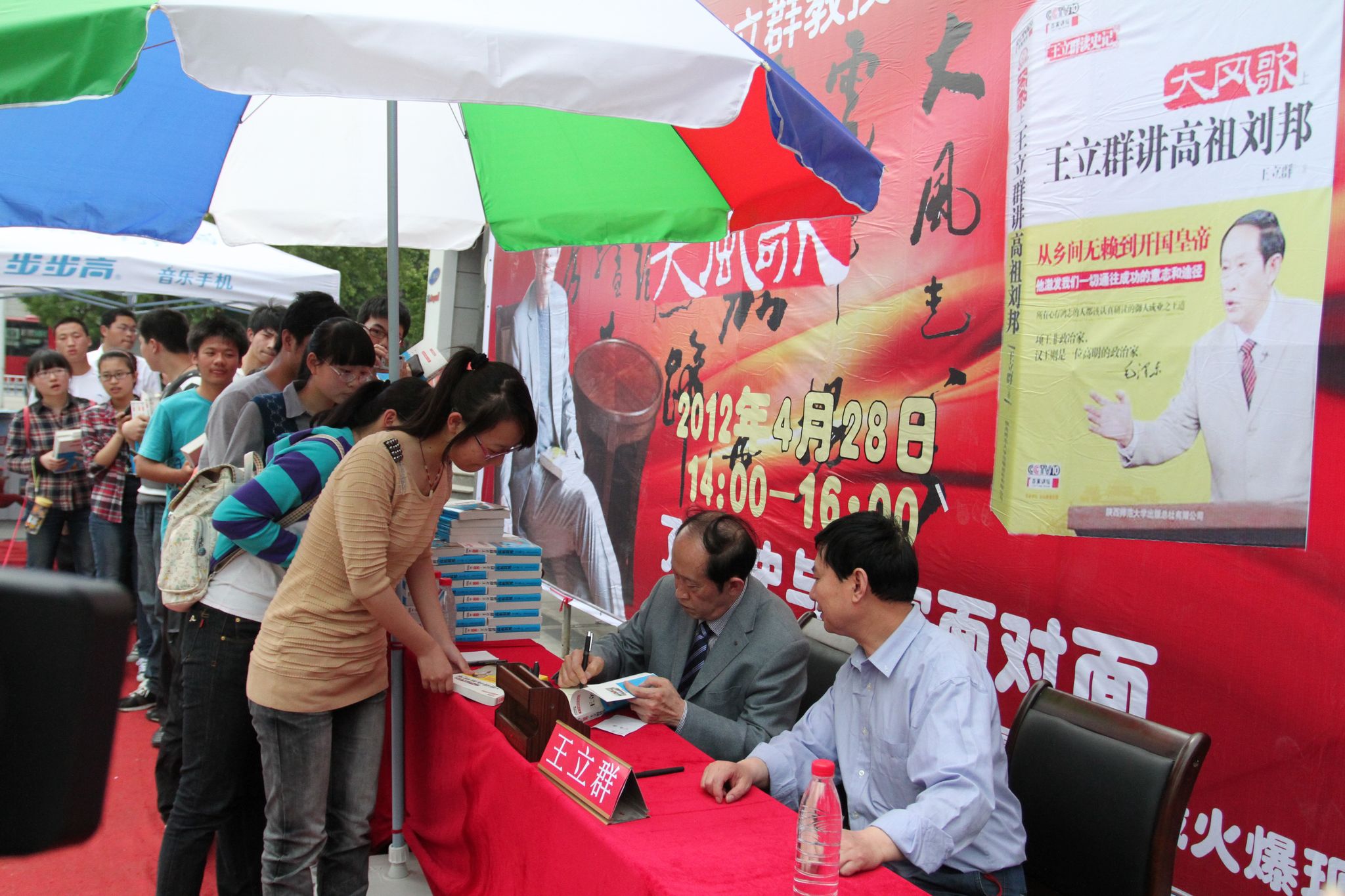 4月28日,央視《百家講壇》金牌主講人、河南大學(xué)文學(xué)院教授王立群攜其新作《大風(fēng)歌》來到駐馬店市店天中書城與廣大讀者見面交流,并為其新作簽售。