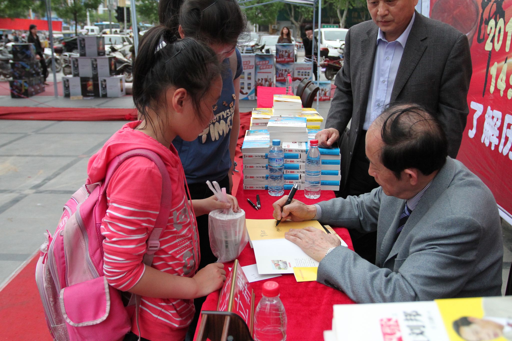 簽售過程中,王立群教授一直耐心與讀者交流,并詳細(xì)詢問讀者的姓名,仔細(xì)的簽在書的扉頁,助手遞到他手上的水都沒顧上喝一口。炎熱的天氣,擋不住讀者的熱情,有些讀者手中少則兩三套書,多則十幾套,他們表示購書簽名是為了送給親戚朋友!八蛶Ш灻臅毁F,有保存價值、有品位。”一位讀者對記者說。有一位老者是王立群教授的忠實粉絲,他的所有作品全部都有,并且都拿到了現(xiàn)場簽名,老者激動地說:“有幸拿到王立群教授簽過名字的書,太高興了”。原計劃兩個小時的簽售活動,因為讀者太多,又延長了半個小時的時間,整個簽售過程共為讀者簽售三百多套圖書。