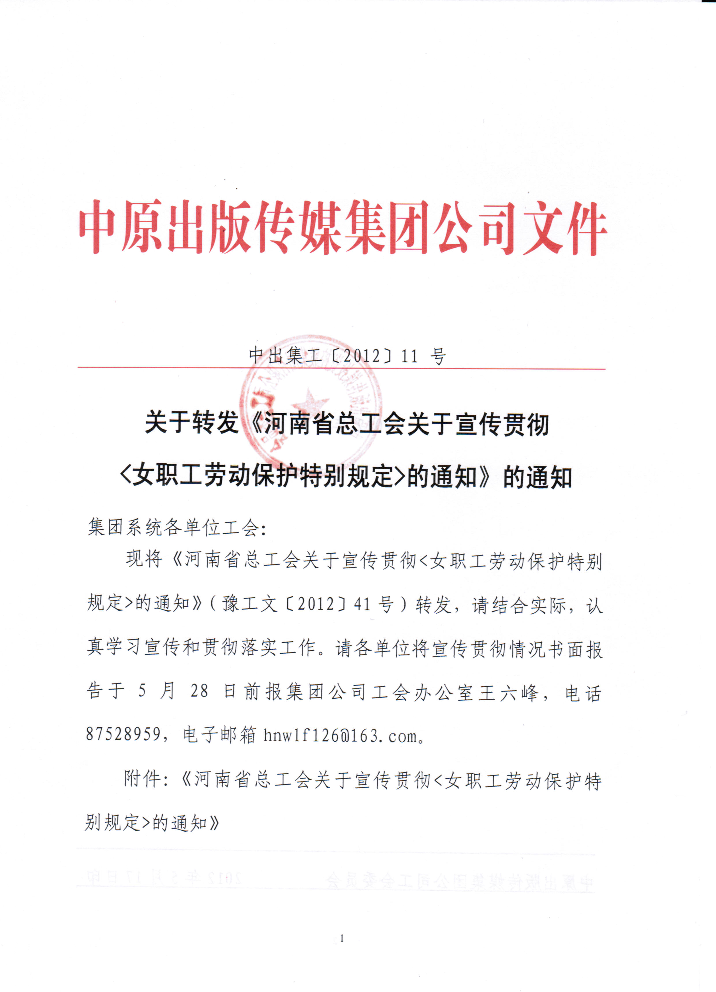 河南省總工會關于宣傳貫徹《女職工勞動保護特別規(guī)定》的通知.doc