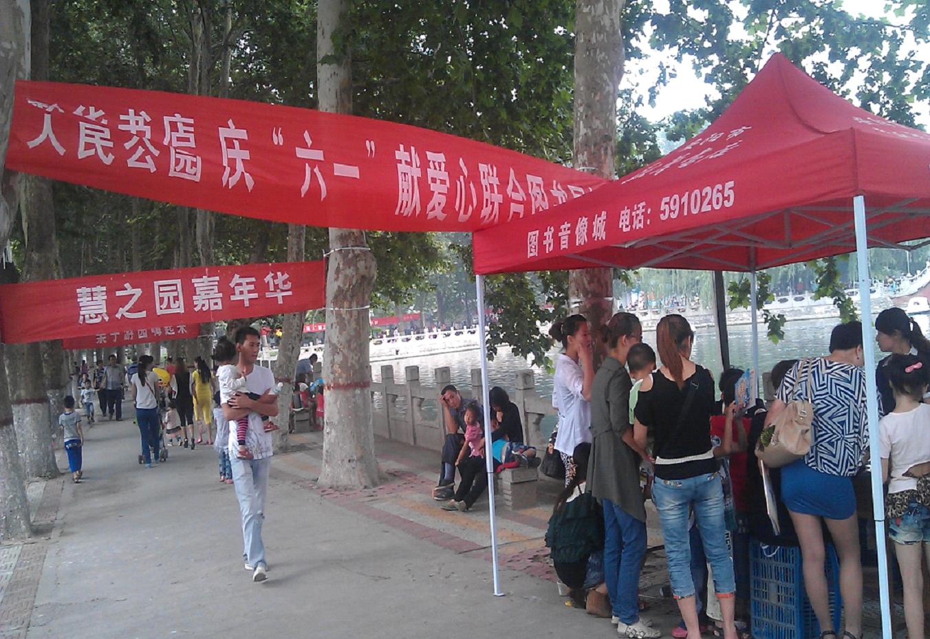 為慶!傲弧眹(guó)際兒童節(jié),安陽(yáng)市店圖書音像城積極和市人民公園聯(lián)系,在6月1日到6月3日期間,聯(lián)合舉辦了為期三天的慶“六一”獻(xiàn)愛心圖書大展銷活動(dòng)。