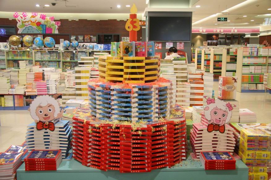 專題展臺(tái)聚攬人。節(jié)日期間,為豐富廣大讀者假期生活,鄭州購(gòu)書(shū)中心賣(mài)場(chǎng)內(nèi)逐層設(shè)立了專題展臺(tái):一樓開(kāi)設(shè)了“讀書(shū)興國(guó) 幸運(yùn)六三”的主題活動(dòng),凡年滿63歲的讀者可憑身份證獲取指定圖書(shū)一本,與祖國(guó)一起同慶63歲華誕;二樓布置了“愛(ài)我中華—國(guó)富安康和諧家”生活保健暢銷圖書(shū)展臺(tái),倡導(dǎo)健康生活理念;三樓設(shè)立了“書(shū)海揚(yáng)帆 品味人生”科普文教圖書(shū)展銷,渲染出知識(shí)強(qiáng)國(guó)的文化氛圍;四樓搭建起“書(shū)香益趣 共享閱讀”展臺(tái),精心布置了喜羊羊、美羊羊、憤怒的小鳥(niǎo)等卡通造型,吸引著小讀者駐足選購(gòu)圖書(shū);五樓的“科技興國(guó) 與國(guó)同慶”主題,強(qiáng)調(diào)了科教興國(guó)的深遠(yuǎn)影響力。此外,大學(xué)路店和農(nóng)業(yè)路店也依據(jù)自身賣(mài)場(chǎng)特點(diǎn)搭設(shè)不同類別圖書(shū)展臺(tái)。各專題展臺(tái)的設(shè)立不僅為賣(mài)場(chǎng)營(yíng)造出濃郁的節(jié)日氛圍,也吸引了眾多讀者的眼球,讀者們?cè)谡古_(tái)前紛紛拍照留念,并爭(zhēng)先選購(gòu)圖書(shū)。