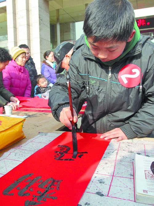 2月2日上午,大河報(bào)聯(lián)合中原圖書大廈共同舉辦的第八屆義務(wù)寫送春聯(lián)公益活動(dòng),繼續(xù)受到熱捧。伴著久違的陽光,活動(dòng)在中原圖書大廈門前廣場熱鬧開場,人們從四面八方趕來領(lǐng)春聯(lián)、要剪紙,兩個(gè)多小的時(shí)間里,30位書法愛好者奮筆疾書、揮毫潑墨,送出約2000副帶著濃濃年味兒和深深祝福的春聯(lián),4位剪紙達(dá)人現(xiàn)場創(chuàng)作的200余張剪紙和窗花,也被爭搶一空。