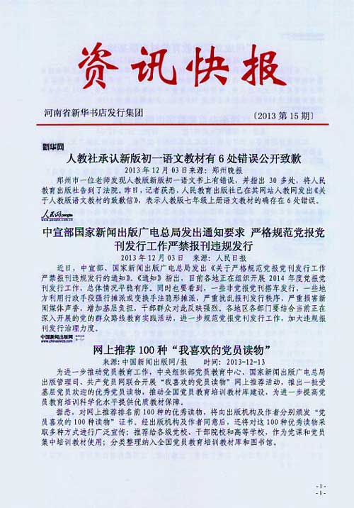 來源:河南省新華書店發(fā)行集團(tuán)有限公司  作者:河南省新華書店發(fā)行集團(tuán)有限公司  發(fā)布時間:2013/12/13 16:19:39  閱讀次數(shù):6102