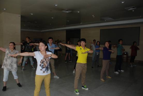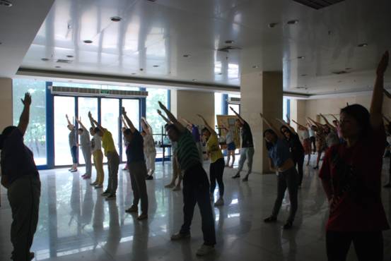 發(fā)行集團公司在開展黨的群眾路線教育實踐活動中,積極響應(yīng)廣大職工群眾訴求,豐富職工文化生活,認(rèn)真貫徹落實全民健身計劃,從7月份起,組織本部員工開展了工間操活動,工間操選用的國家體育總局正式發(fā)布的第九套廣播體操。此項活動得到了廣大職工的積極響應(yīng)和熱情參與,大家就近在走廊或辦公室等地,在輕快優(yōu)美的旋律下,認(rèn)真按標(biāo)準(zhǔn)做好每一個動作,舒展四肢、鍛煉身體,消除亞健康狀態(tài)。通過開展工間操活動,增進了廣大職工身心健康,削除了疲勞,提高了工作效率,也培養(yǎng)了員工的團隊精神,營造了和諧健康的企業(yè)文化氛圍。
