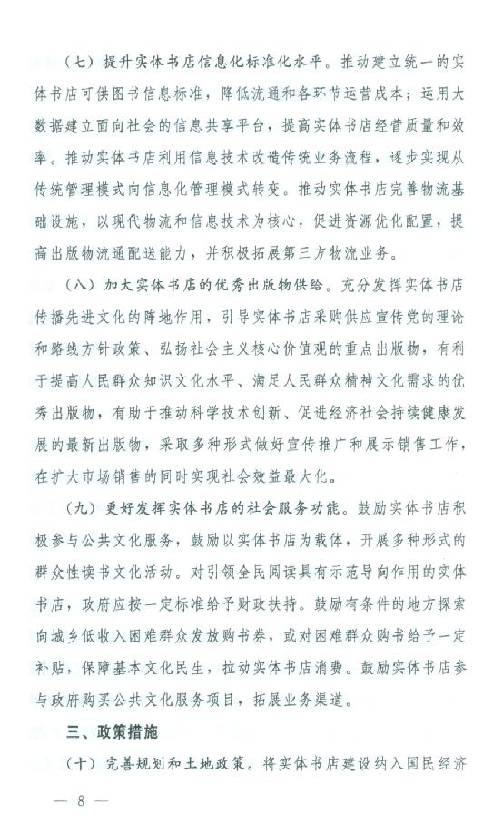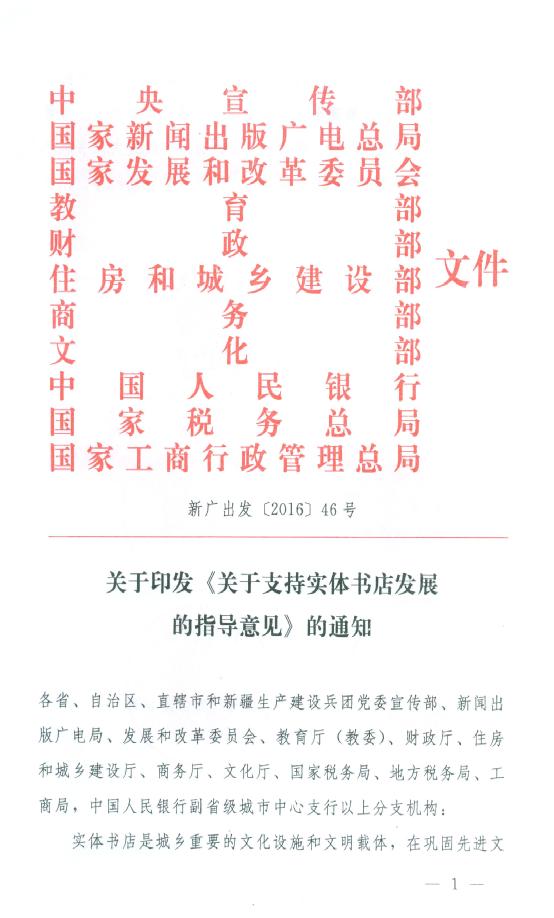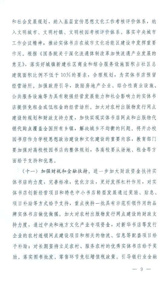 關(guān)于印發(fā)《關(guān)于支持實(shí)體書店發(fā)展的指導(dǎo)意見》的通知