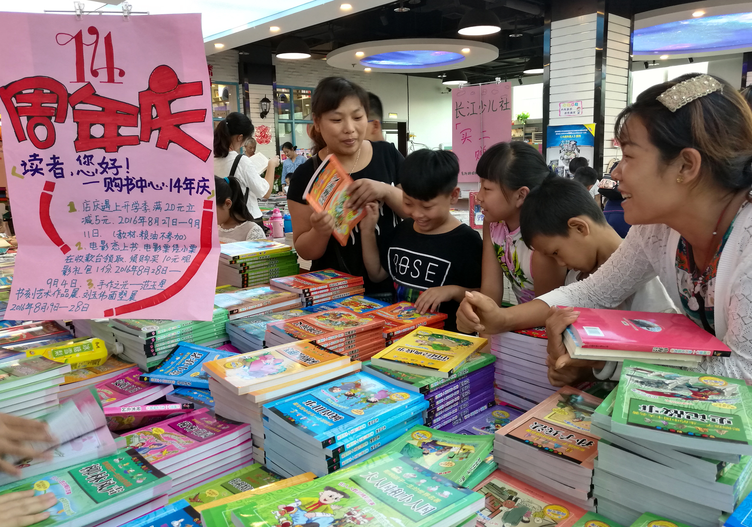 9月10日和11日是新鄉(xiāng)市全市各學(xué)校新學(xué)期開(kāi)學(xué)后的第一個(gè)雙休日,廣大中小學(xué)生紛紛利用休息時(shí)間來(lái)到書(shū)店選購(gòu)新學(xué)期適合自己的課外讀物。為了抓住這一銷售良機(jī),新鄉(xiāng)市店購(gòu)書(shū)中心提前著手,通過(guò)與有關(guān)學(xué)校溝通聯(lián)系,了解掌握了小中學(xué)生的用書(shū)需求,在進(jìn)貨、備貨方面做到了有的放矢。在營(yíng)銷方面,從8月28日至9月11日,結(jié)合新鄉(xiāng)市店購(gòu)書(shū)中心開(kāi)業(yè)14周年店慶活動(dòng)的開(kāi)展,推出了迎“開(kāi)學(xué)季”主題營(yíng)銷活動(dòng),全場(chǎng)商品滿20減5元,多買(mǎi)多送,將開(kāi)學(xué)期間的熱門(mén)、熱銷學(xué)生用書(shū)及老師推薦用書(shū)制成宣傳版面,張貼在賣(mài)場(chǎng)入口處,引導(dǎo)學(xué)生讀者選購(gòu),同時(shí)利用微信、短信及顯示屏等平臺(tái)對(duì)活動(dòng)進(jìn)行了有效宣傳,收到了良好效果。