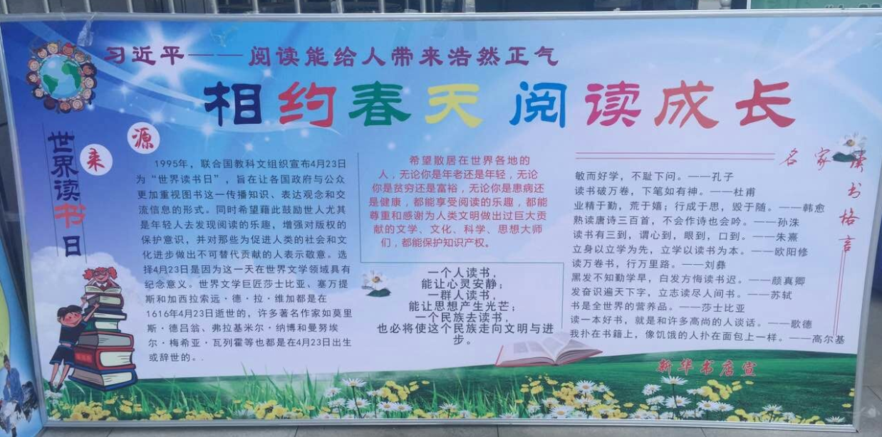 今年是新華書店誕生80周年。店慶80周年是屬于新華書店全體干部職工的共同節(jié)日,是凝心聚力、推進發(fā)展的一次動員,又恰逢世界讀書日的到來,南陽市店為隆重慶祝這一偉大節(jié)日的到來,開展了系列活動。 4月23日—24日,南陽市店利用微信等網(wǎng)絡平臺,推送新華書店80周年店慶和世界讀書日宣傳簡訊,在全市范圍內(nèi)進行多種多樣的宣傳活動,同時配合開展了聚暢銷聚劃算回饋讀者、優(yōu)學匯暢書會類暢銷圖書優(yōu)惠展銷、精品豫版圖書優(yōu)惠展銷等重點營銷活動;方城縣店啟動了“書香方城”全民閱讀活動;新野縣店組織了師生、家長和熱心讀者共計有近200人參加的“讀書會”和“喜迎世界讀書日、鉅惠讀者”圖書展銷活動;鎮(zhèn)平、唐河、臥龍、南召等縣店都舉辦了各種各樣的宣傳營銷活動。 世界讀書日暨新華書店店慶活動的開展,進一步引導了廣大讀者崇尚文明的閱讀理念,營造了文明的學習氛圍,在全市再次掀起了閱讀學習的新高潮。