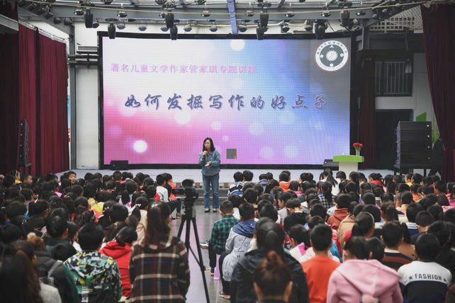 在“名家進(jìn)校園”活動(dòng)中,管家琪老師每到一所學(xué)校,都以自己如何與寫作結(jié)緣為引,談到自己獲得寫作題材的方法,鼓勵(lì)學(xué)生們?cè)谌粘V卸嘤涗,做好筆記,尋找發(fā)現(xiàn)的眼睛,結(jié)合寫作經(jīng)歷和生活小故事,以通俗易懂、風(fēng)趣幽默的語言和豐富的人生經(jīng)歷,和學(xué)生共同分享閱讀和寫作中的感悟,教學(xué)生發(fā)揮想象,感受寫作帶來的樂趣。精彩互動(dòng)環(huán)節(jié)中,管家琪老師以游戲的方式和孩子們玩起來寫作游戲。針對(duì)大家寫作方面的迷茫與困惑、管家琪老師與現(xiàn)場孩子們進(jìn)行真摯而親切的交流,解答孩子們的困惑;顒(dòng)現(xiàn)場氣氛活躍,活動(dòng)的最后管家琪老師還建議孩子們,在日常生活中,多閱讀名著以及積極向上的作品,它可以開闊視野,拓展思維。現(xiàn)場觀眾或積極提問、踴躍發(fā)言,或認(rèn)真聆聽、認(rèn)真記錄,現(xiàn)場洋溢著開心閱讀氣氛。在每次講座結(jié)束后,管家琪老師還饒有興趣地為喜歡自己作品的小讀者簽名留念。